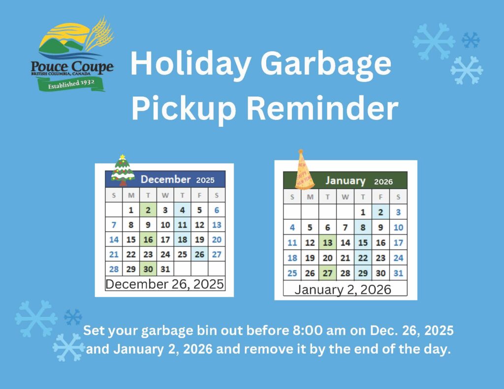 Holiday Garbage Collection December 23, 2025 ← Where Should the Snow Go?Notice of 2026 Council Meeting Schedule →