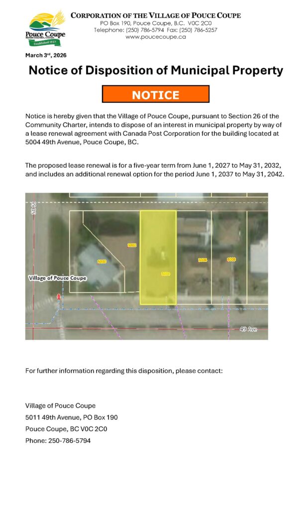Notice of Disposition – Post Office Lease Renewal March 3, 2026 ← Link to Village of Pouce Coupe Budget Comparison 2026Culvert and Ditch Drainage Work →
