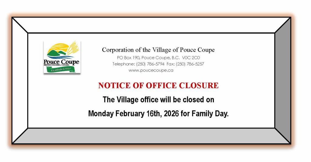 Office Closure February 16, 2026 February 13, 2026 ← Notice of Meeting Postponement – February 13, 2026Link to Village of Pouce Coupe Budget Comparison 2026 →