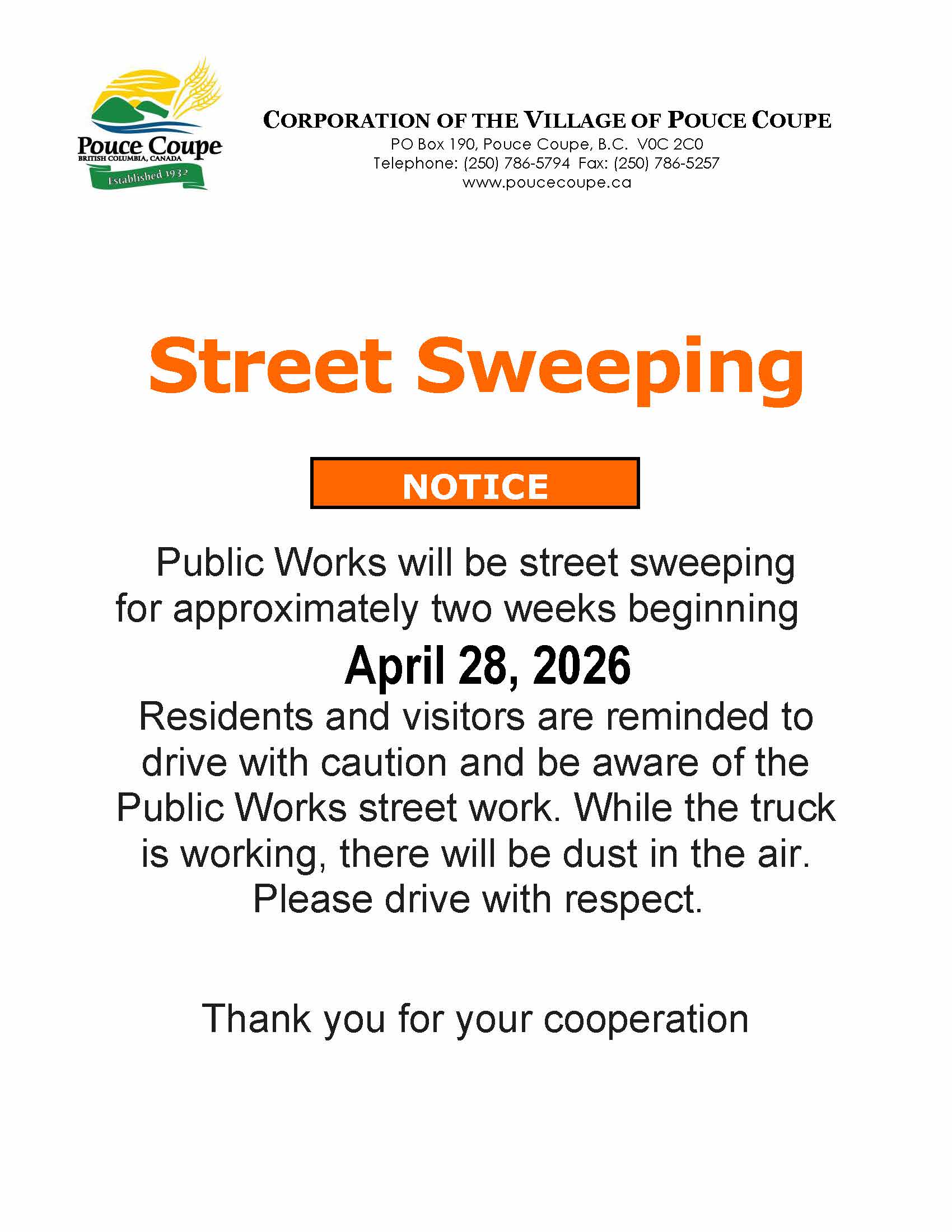 Street Sweeping in Pouce Coupe